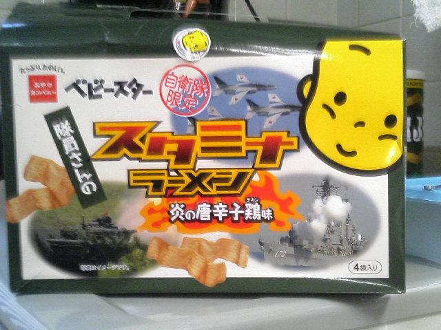 25 September 体が痛い 健康健康とはいっても、痛いところはあるのですよ。今は左の肘から中指にかけてが痛いです。まぁほっときゃなおると思うんだけど。なんか痛いってだけで凹むよね。たまぁ~に背中に激痛が走ったり、鎖骨が痛かったりはすんだけどね。なんじゃろね。人体って本当に不思議なものですよねぇ。あと、秋口のせいなのか、眠たくて眠たくて仕方がないのまぁとりあえず健康っぽいからいいか。ご当地ベビースター隊員さんのスタミナラーメン~炎の唐辛子鶏(チキン)味~数あるご当地ベビースターの中でも旨さ上位にランクインですよかなり美味しかったハマるでも、全国にある自衛隊の中でも岩手にしか無いとかなんとか…ほんとかしらとりあえず、また買って来て下さい!!とおねだりしておきました。ちなみに、ベビースターラーメンは我が三重県が出身地でごじゃります。んまんま。で、もうヒトツ自衛隊限定のお饅頭も食べました。これも真中に栗が入っててうまうますごいよマサルさん何故か今ごろ借りて読んでるの。(笑)昔読んでたんだけどね。当時の記憶ではモエモエはまともだったんだけど、読み返してみたらただの変な人だった…キュピーン! PR