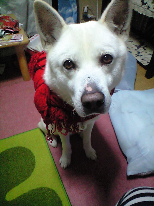 19 February ぶどうのジュースが飲みたいです。 あっら~?晩御飯、辛かったかなぁ~?ジュースが飲みたいので買ってきましょうね。冬だし、しゅわさんにお約束の赤いマフラーを巻いてみたんだけど、どうにもこうにも、写真を撮らせてくれない。いい角度で撮らせてくれない。ほんでこんな写真に…『おとうさんより大きくてゆるい顔なんだよ~。』服は嫌がるくせに、マフラーだけは絶対嫌がらない・・・なんだろ。首輪感覚なのかしら?高橋大輔くん、メダルおめでとうございます。すごいよね~。でもインタビューで「フリーで思ったほど点数が出なかった」って言ってたね。四回転も失敗しちゃったしね。きっと誰よりも自分が一番悔しいだろうなぁ。スピードスケートの加藤条治くんも、「金を取るつもりだった」から悔しい気持ちはあるって言ってたね。ほんとね。自分が一番くやしいよね~。メダルは嬉しいけどでも~!!!って。そういう事を考えながら見ていると泣きそうになりますな。後の選手たちも、自分に悔いのない試合をしてほしいですね~♪