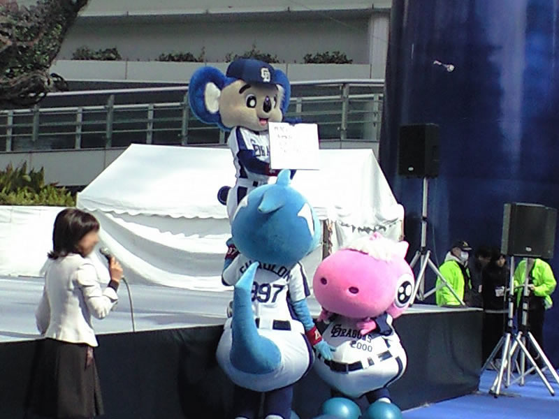 21 February も~えよドラゴンズぅ~♪ ご当地キャラ!?ドアラとシャオ・パオが居ました。シャオロンの足が思っていたより長くてショック。もっと短く在れ!!!!!パオロンはドアラとシャオロンの影になってなかなか様子を掴めず… ドアラは相変わらず体だけしっかり人間なので不気味。いい気になってんじゃねぇぞ? プロ野球はシーズンじゃないのかな?WBCですか?イチロー、かっけ~なぁ~。通りすがりの際にはパチっとweb拍手をお願いします。 PR