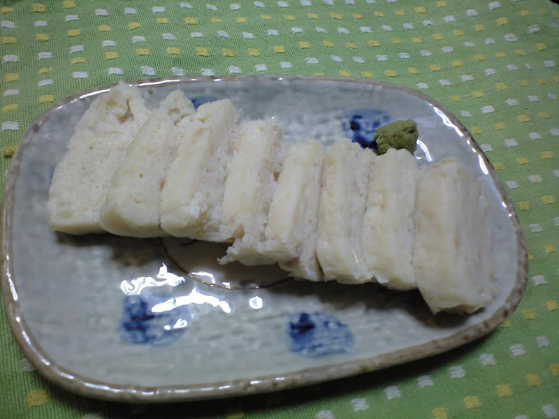 15 February かまぼこ お久しぶりのホリデークッキング今日は、蒲鉾にチャレンジ~出来立ての蒲鉾をわさび醤油で食べながら、冷酒をクイ~っとねんで。出来たのがこの子見た目はまぁアレなんですが、中々のお味でしたわ♪2回に別けて作ったんだけれど、一回目を作っているとき、フードプロセッサーのカッターの刃が見つからず、泣く泣く、すり鉢とすりこぎでえんやこらと作りました2回目に、フードプロセッサーを使ったときの感動といったら色々なレシピを見て作ったんだけれど、どのレシピにもあった、「身を水にさらす」という工程をぶっ飛ばしちゃったわっていうのは、今回は"さわら"、"たら"、"赤魚"を使ったんだけれど、切っている時にあまり油が無いなぁと思ったのと、面倒臭かったから。(笑)臭みを取るといえばお酒だろう。っつーてお酒を振りかけて誤魔化しました。ただ、2回目は調味料の分量を間違えて、塩辛くなってしまったのよね~ああ~ショックだよ。つーことで、こちらはそのまま食べるのは諦めて、胡瓜と酢の物にしてみました。そしたらんまかったよ。あとは、お母さんによって、鰯のつみれに混ぜられていました。ああ~初めてにしてはなかなか上手くできたかなやっぱり、たまにやると楽しいもんだよね。毎日はいいや。手の込んだことは出来ないし。通りすがりの際にはパチっとweb拍手をお願いします。