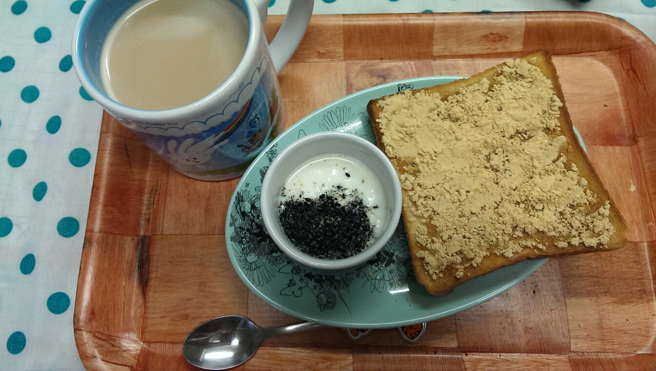 08 September 自炊メモ9月8日(朝、昼) ■食パン、きなこ、はちみつ■ヨーグルト、黒ゴマ、はちみつ■カフェオレ■ごはん■おかず・かぼちゃの煮付け・しいたけのひき肉乗せ・ちくわの肉詰め■夜食うどん、たまご、ほうれん草