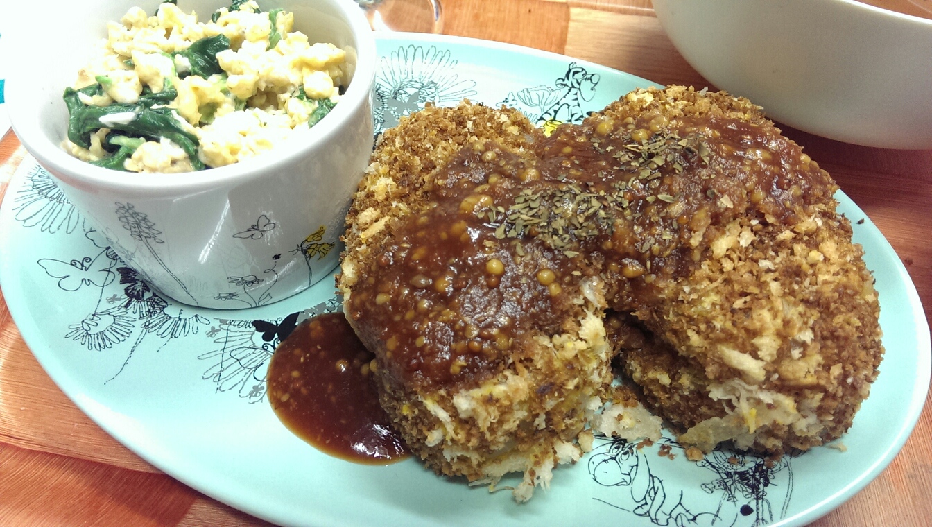 02 September 自炊メモ9月2日(朝、昼、夜) ■食パン、きなこ、はちみつ■ヨーグルト、黒ゴマ、はちみつ■カフェオレ■栄養ドリンク■ごはん■おかず・炊き込み御飯(いつだかのを冷凍していたやつ)・ゆかり入り卵焼き(いつだかのを冷凍していたやつ)・茄子のトマトソースパスタ(いつだかのを冷凍していたやつ)・ウインナーとほうれん草のソテー■ごはん■メインかぼちゃコロッケ■副菜・炒り卵とほうれん草のマヨネーズあえ・人参ともやしのコンソメスープ