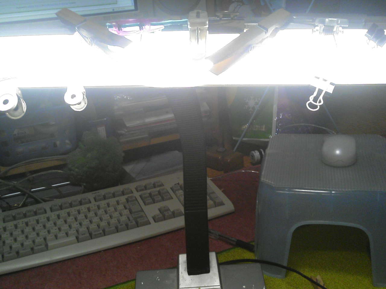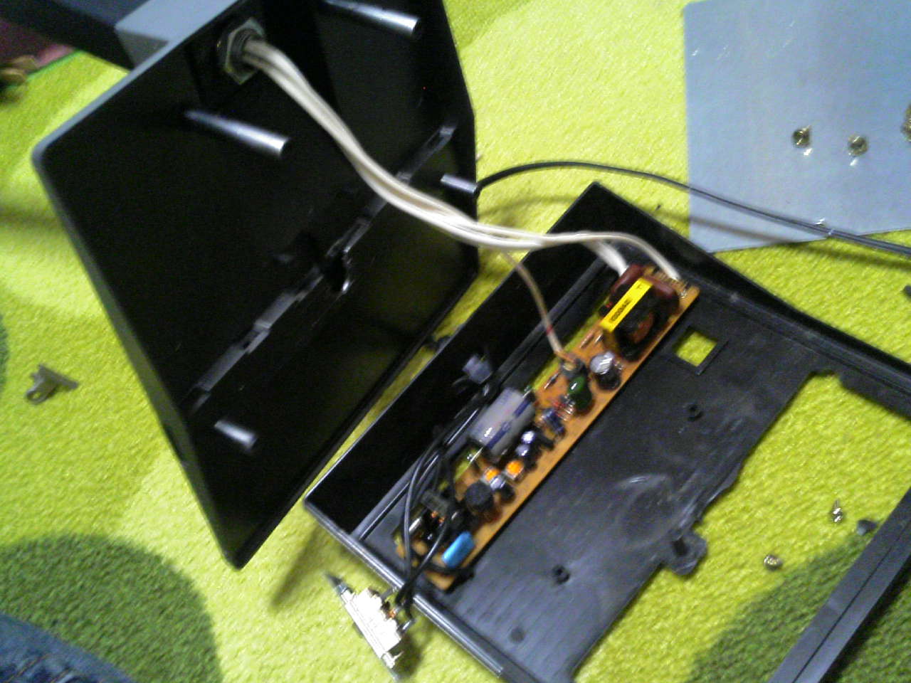 11 June ちみちみちみちみ 今日は何が壊れたかというと…お絵かきの時に愛用している電気スタンド…これは底の板を外したところね。スイッチの部分をスライドさせると点灯するんだけど、いつもは"カチッ"って鳴き声がするところ、今日は"スカッ"っつって電気がつかない。壊れた!?っとくれば…解体っ♪解体っ♪解体っ♪解体っ♪ボタンがあれば押す~!紐があれば引っ張る~!!ネジがあれば外すうぅぅぅぅぅ~~!!!で、解体したところ、どうもプラスチックが折れていたようで。う~ん。結構倒したり、落としたりしてるからなぁ。こういう細いプラスチックで、根元から折れてるってぇのは、ボンドでくっつけても安定しなくて、すぐにまた折れる確率が高いのよねぇ。と、思って多めにボンドを流し込んでみて、余分なボンドをティッシュでふき取り、乾燥を待ってとスイッチを動かしてみると…ま、まさか!ボンドが隙間に流れ込んで固まり、見事にスイッチが動かない!!!ボンドの流しすぎ!?ビクともしない~!!!!!ぎゃ~!!!!これだもぉ~ん!!!と凹みかけて、ここで私の強運ちゅーかなんとかなった現象発生!!固まったスイッチ、よく見ると"ON"側で固まっているじゃないの!!!もしかすると!という期待をこめて、解体した部品をネジネジと組み立てたててっ!!コンセントへぐっさ~り♪じゃかじゃかじゃん!!!点いた~~!!!!!やっるぅ~!!!ね♪スイッチを"OFF"にするより、コンセントを抜いたほうが節電になるっていうしね。スイッチを動かさないってことは、細いプラスチックが再び折れることはないしね。↑そもそも動かないし。今日も描き描きできますわ。良かった。良かった。遊びに来てね~!!
