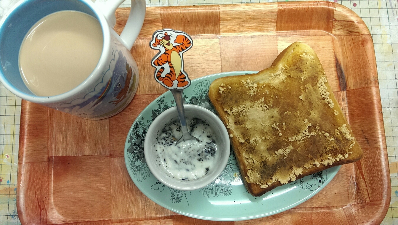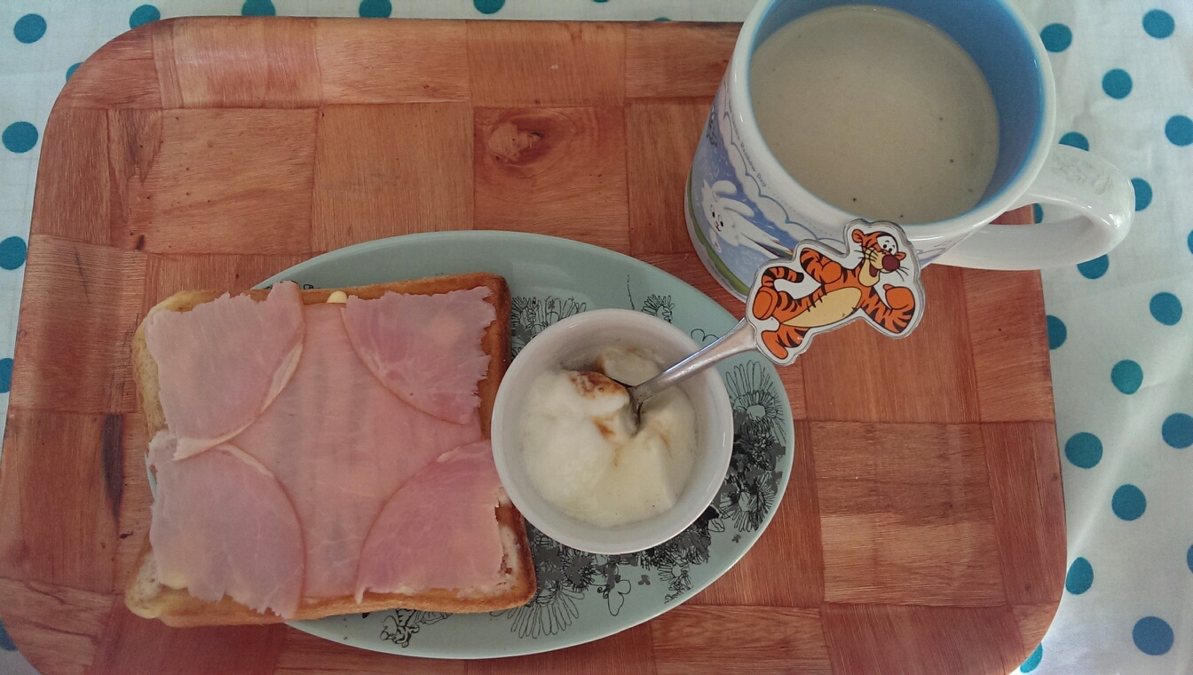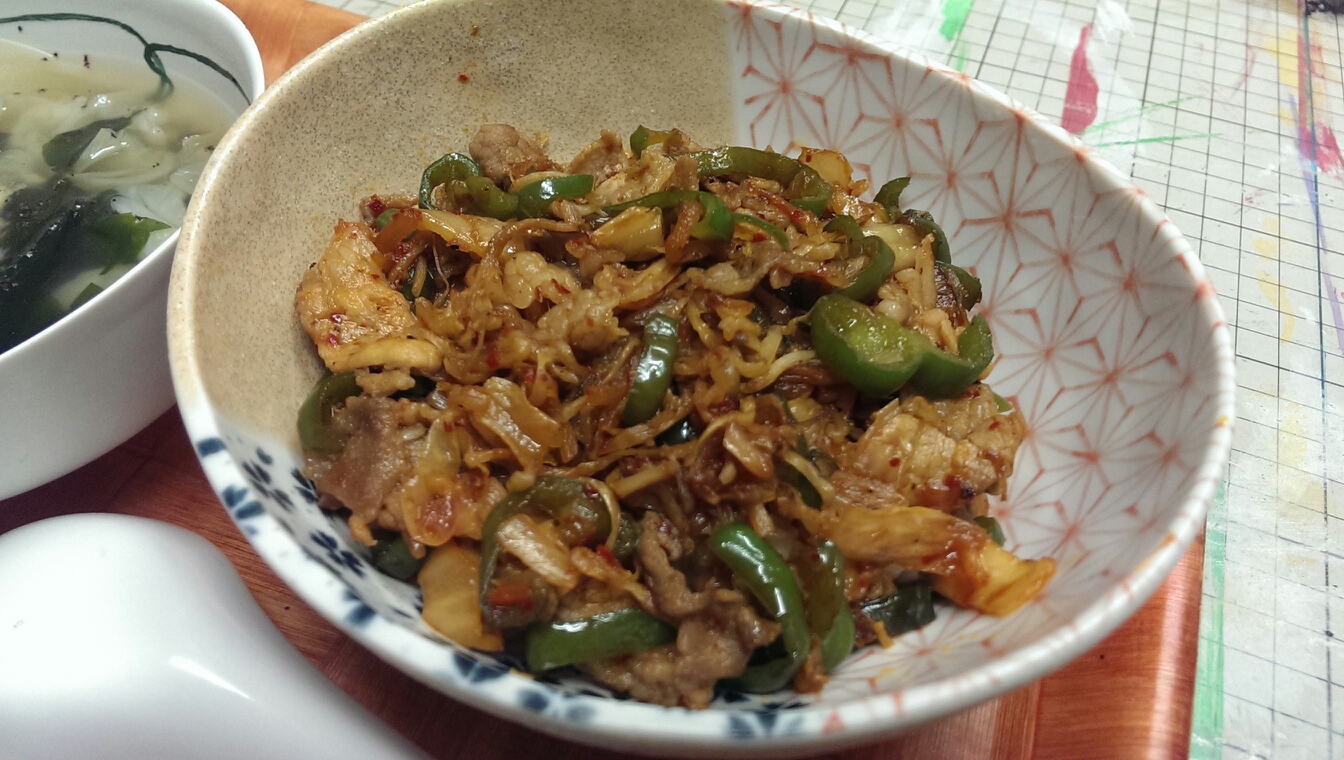 23 August 自炊メモ8月23日(朝、昼、夜) ■食パン、マヨネーズ、ハム■ヨーグルト、黒ゴマ■コーヒー牛乳■メイン・炊き込みご飯の和風あんかけオムライス(※以前作って冷凍しておいた炊き込みご飯)■メイン豚キムチ丼■副菜・キャベツとワカメの鶏がらしょうがスープ
