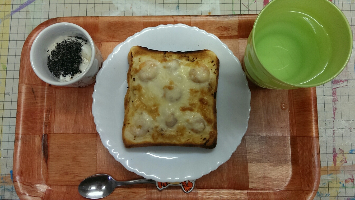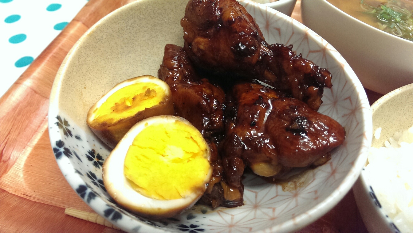 24 August 自炊メモ8月24日(朝、夜) ■食パン、チーズ、えび■ヨーグルト、黒ゴマ■コーヒー牛乳■ごはん■メイン・鶏手羽のさっぱり煮・煮たまご■副菜・きのことウインナーのマスタードソテー・大根と油揚げの味噌汁