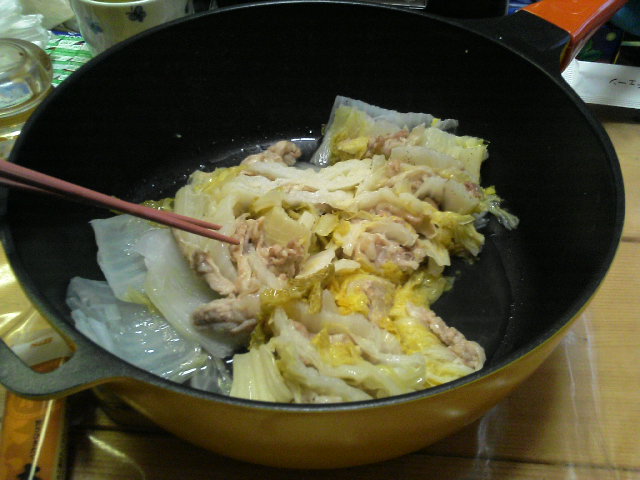 01 May じじぃかばばぁ。 っっっっっっきょぉ~うは駄目だったわ~。何がって、湿気がね。凄かったでしょう。んもぉ~頭の中も湿気でねぇ。こりゃいかんって感じで、今日こそ宣言どおり早く帰ってきてやりましたわっまぁその分明日にお仕事を残してるっちゅーかなんちゅーか最近ねぇ…暑くなってきたせいなのか、歳をとったせいなのか、一気に沢山食べられなくなったのよ。まぁ元々そんなに大食いではないけれどね。米は相変わらず昼くらいしか食べてませんわ好きな野菜はピーマン。昨日はレミパンを使ってみましたわ食べかけで撮影。(笑)なので見た目はアレだけどね。白菜をレミパンに敷き詰めて、葉の間に豚ばら肉を挟みこんでいくのね。で、お酒と塩を振って蒸し煮(?)すんの。そして、からし醤油かポン酢で食べるのですよ白菜を切るトコロから含めて1時間弱かかっちゃうんだけどねぇでも超~カンタンで超~美味しかったぁ~トップページのイラストを変えるために、久しぶりにillusutratorと格闘中。仕事じゃゆっくり使うことなんて無いからねぇぇいこいのぼりさんやらが登場致しますよ連休中に完成させるでやんす最近、企業やテレビドラマのサイトを閲覧していると、本当に凝っていて可愛くて楽しい。フラッシュをもっと勉強して、こういうお仕事がしたいと少し思うようになった。勉強して立ち上がるかどうかはまだ未定。一時的なものかもしれないし。とりあえず、今は目の前の個展と目の前のフラッシュ。うりゃぁっ