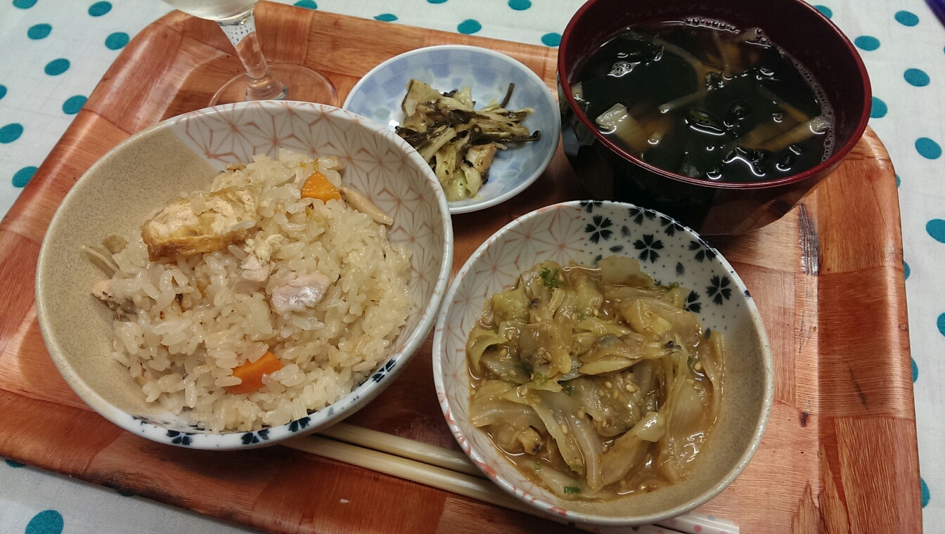 20 August 自炊メモ8月20日(朝、昼、夜) ■食パン、マヨネーズ、ハム■ヨーグルト、グレープフルーツジャム■コーヒー牛乳※写真撮り忘れ■ごはん■麻婆豆腐■メイン・炊き込み御飯■副菜・アサリとキャベツの酢みそあえ・大根とわかめのお吸い物