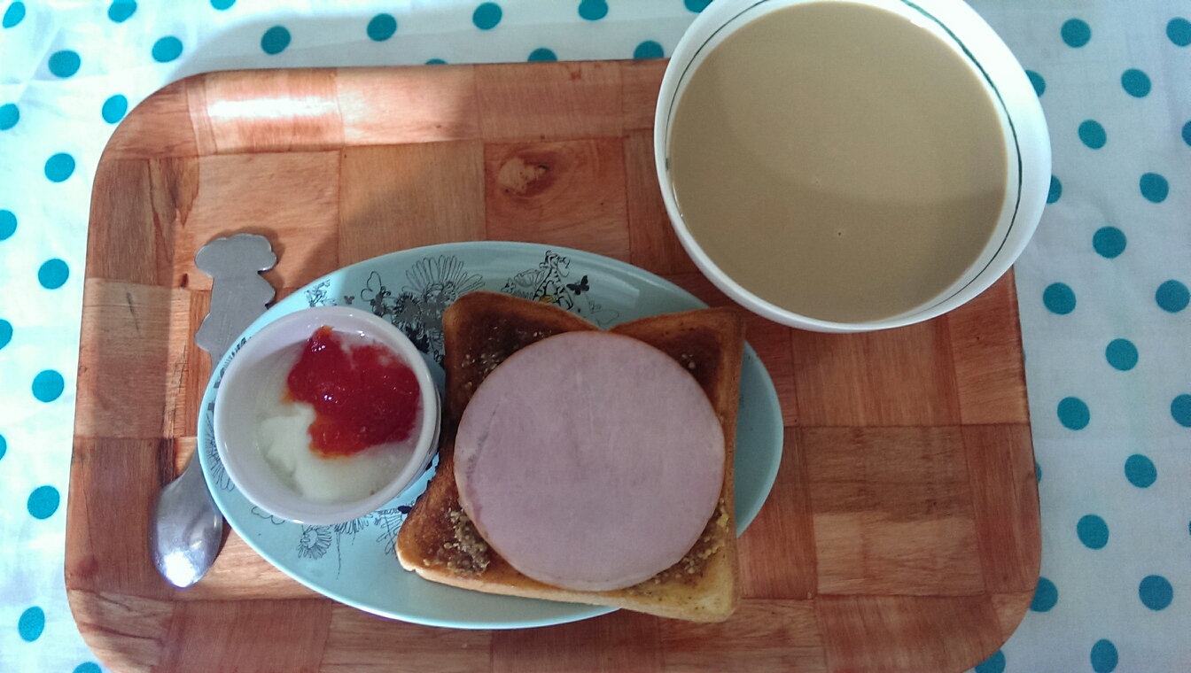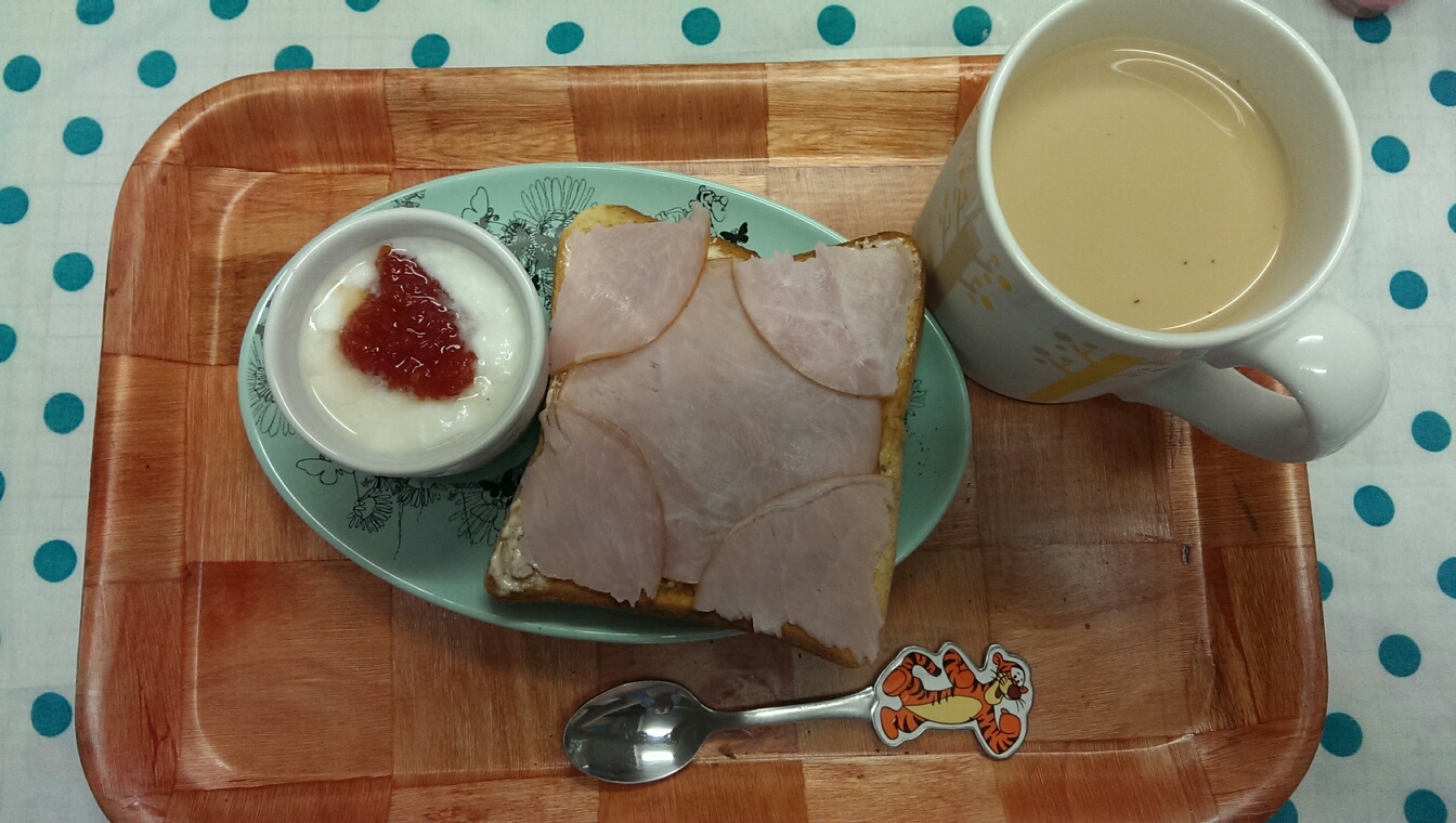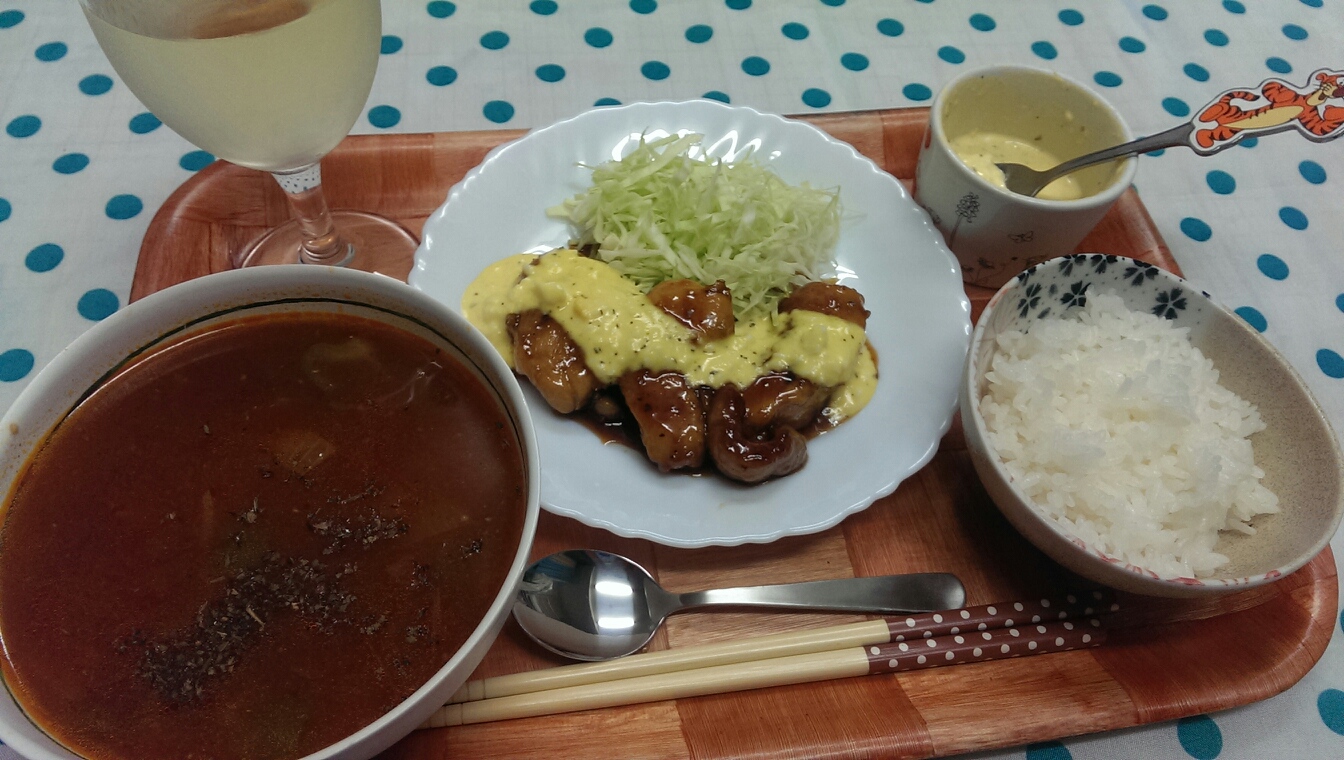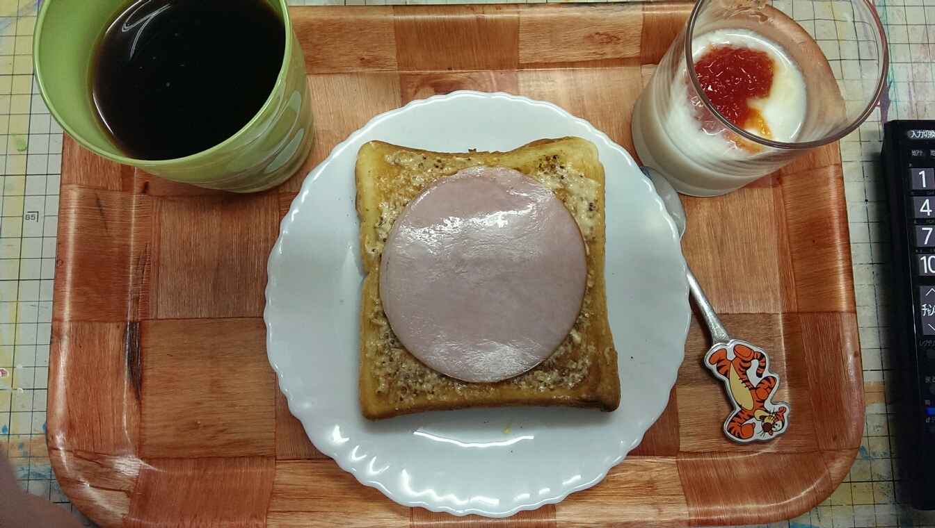 17 August 自炊メモ8月17日(朝、夜) ■食パン、マヨネーズ、ハム■ヨーグルト、グレープフルーツジャム■コーヒー■ごはん■メイン・鶏胸肉のタルタルチキン南蛮■副菜・キャベツの千切り・大豆とたまねぎとピーマンのトマトコンソメスープ