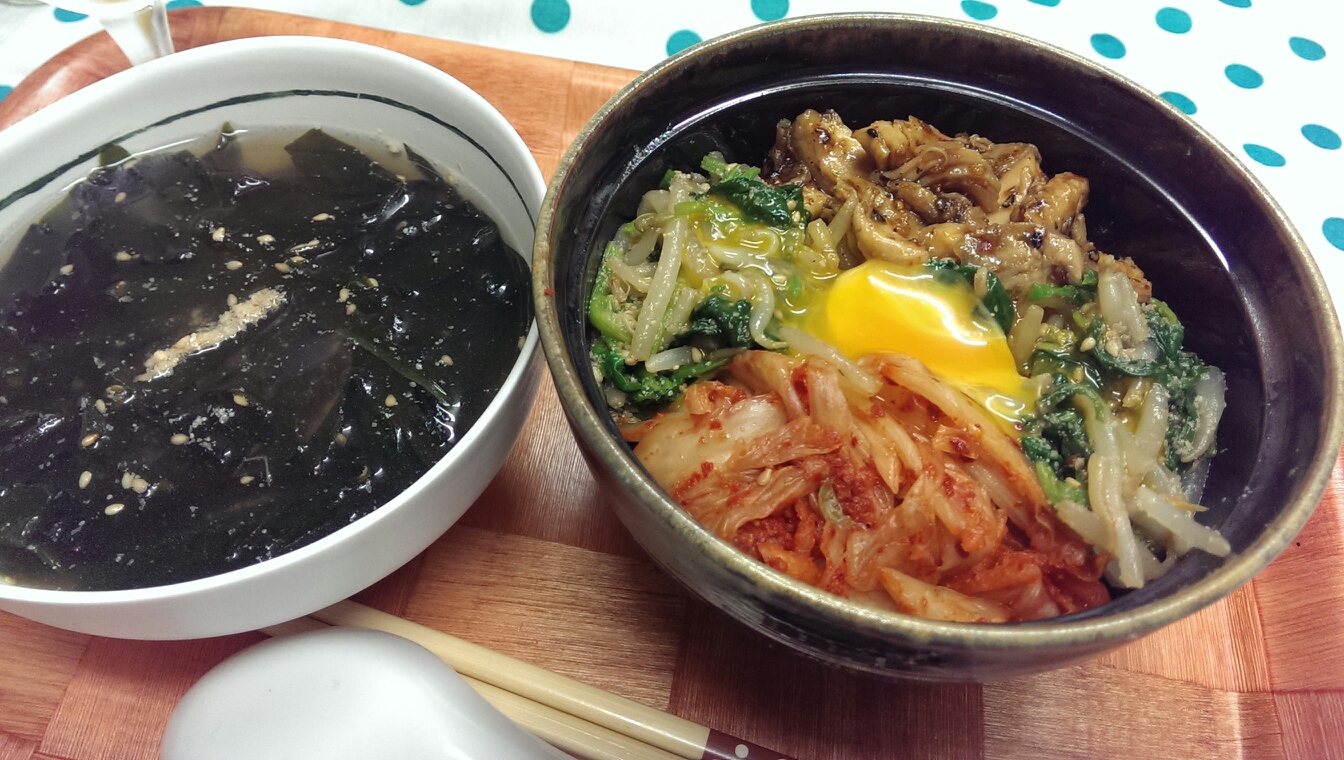 16 August 自炊メモ8月16日(朝、昼、夜) ■食パン、マヨネーズ、ハム■ヨーグルト、グレープフルーツジャム■カフェオレ■メイン・焼きうどん(鶏のささみ、たまねぎ、黒胡麻、かつお節)■メイン・ビビンパ丼(鶏ささみの七味たっぷり焼き肉のタレ炒め、もやしとほうれん草の白ゴマ山盛りオリーブオイルナムル、キムチ)・ワカメスープ