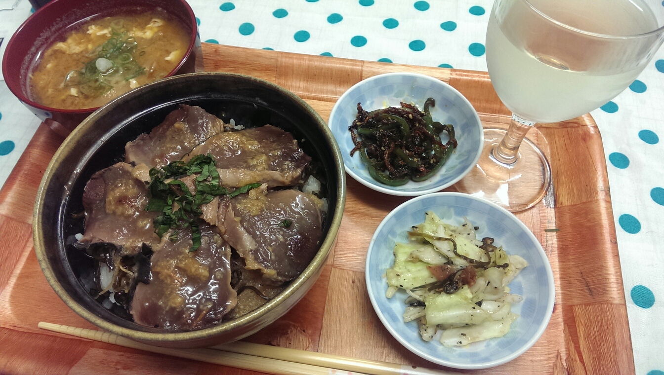 18 August 自炊メモ8月18日(朝、昼、夜) ■食パン、マヨネーズ、ハム■ヨーグルト、グレープフルーツジャム■コーヒー牛乳■ごはん■おかず・鶏胸肉のタルタルチキン南蛮・キャベツの千切り・タマゴサラダ■メイン・鰹のたたきの漬け丼■副菜・卵とたまねぎのお味噌・キャベツの梅肉あえ・ピーマンと人参のきんぴら PR