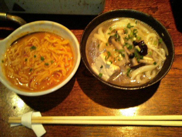 13 December 食ったど~っっっ!!!! めっちゃ食った。ほんと、今下向くと出そう…←汚い。7種類のお出汁から2種類選んで食べられるしゃぶしゃぶのお店に行ってきました!!チェーン店だけど、結構どの店もそこそこのお味のものを出すので、まぁ外れないとは思っていたけど…うん!うん!美味しかったしリーズナブル!!!←もちろんクーポンを使ったよ!20%ねっ!(笑)ぶらぼ~♪♪食べる前に撮る!?あははははははは!忘れてた忘れてたって事で散々食い散らかした後の鍋。今日は旨辛だしと美肌効能だしをチョイス♪おまけに美肌効能だしに更にコラーゲンを追加してみたりなんかしちゃったりして~vvvv旨いっ!で、最後の力を振り絞っていただくのはもちろん…麺っ!旨辛だしには中華麺、美肌効能だしにはうどんを入れていただきました。ご馳走様でした。でぇ、「しゃぶしゃぶは一人前から出来る」となってたわけ。今日は2人で行って2つしゃぶしゃぶのコースを注文したんだけど、鍋はヒトツでした。(2層だけど。)さて、店員さんに、素直に正直な疑問をぶつけてみました。「鍋を増やしてもらえるのは何人からですか?」つまり、一回の来店で2種類以上の出汁をいただけるのか?っちゅーよくばりな疑問。でも、当たり前っちゃぁ当たり前の疑問だと思っていたら…思い切り首を傾げられてしまいました。具体的な決まりは無いようです。「6人で来たら鍋は3つ?2つ?6人で来ても1つ?」と、つめよってみましたが、曖昧なお返事しかいただけず。予約や来店の際の交渉次第と言った所でしょうか???http://www.idx-net.com/他にもぐるなび、ぐるめウォーカー、楽天ダイニング、ホットペッパーなどなどクーポン誌に載っているんで、興味のある型はお調べやす♪うわぁぁぁぁぁぁぁ~!!!!朝の9時と夜の9時を間違えて録画予約しちゃったぁぁぁ…面倒だ…でも見たい…
