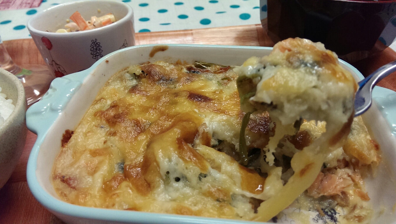 11 August 自炊メモ8月11日(朝、昼、夜) ■食パン、マヨネーズ、ハム■ヨーグルト、バナナジャム■カフェオレ■チャーハン(ニンジン、ピーマン、たまねぎ、ひき肉、鶏がらスープ)※昨日の晩ご飯と同じ。多めに作ってお弁当にした。■梅干し■ごはん■メイン・鮭とほうれん草のグラタン■副菜・ニンジンとハムのマカロニサラダ・ワカメのコンソメスープ