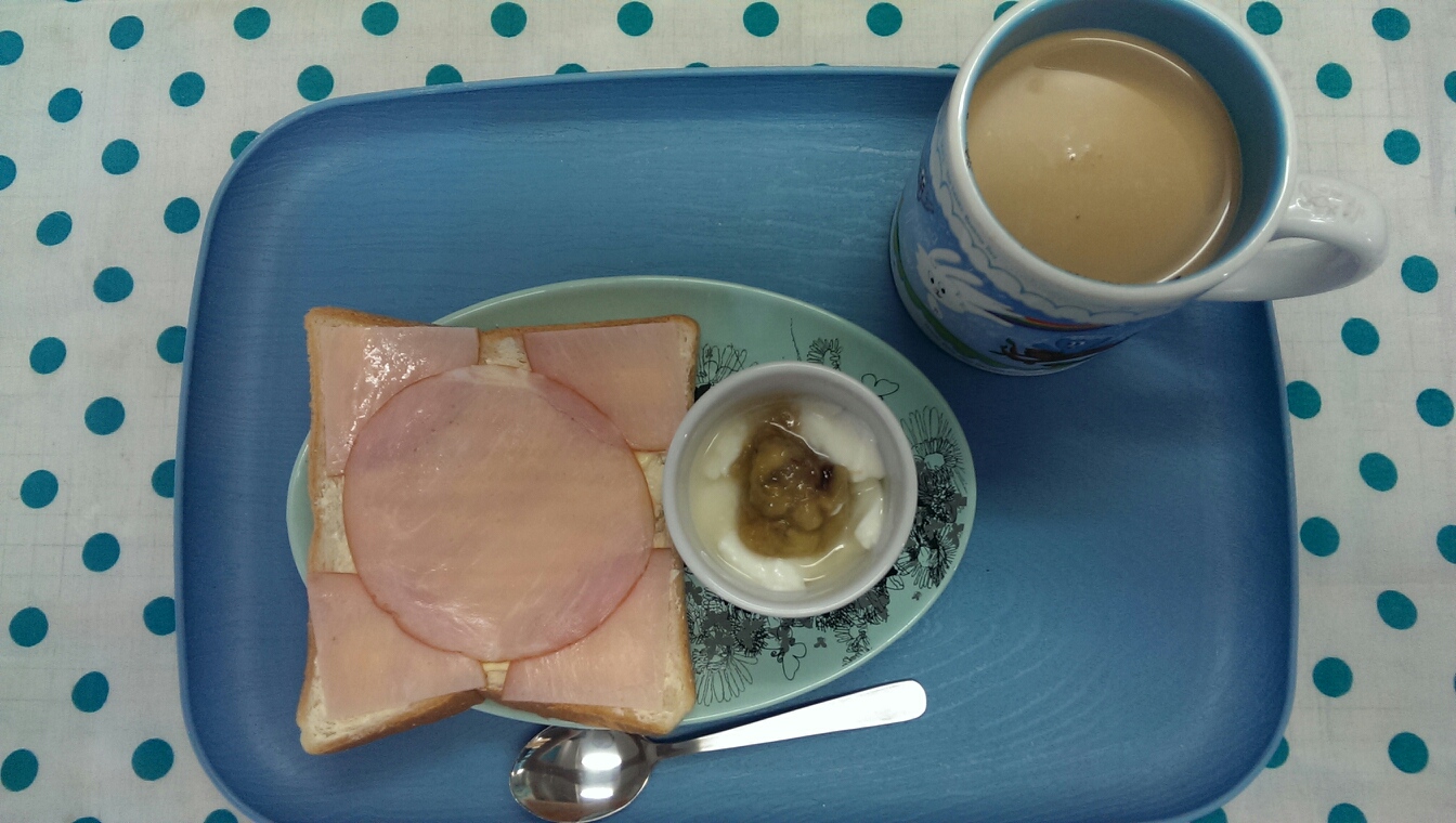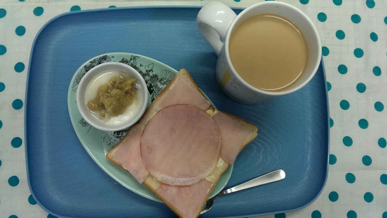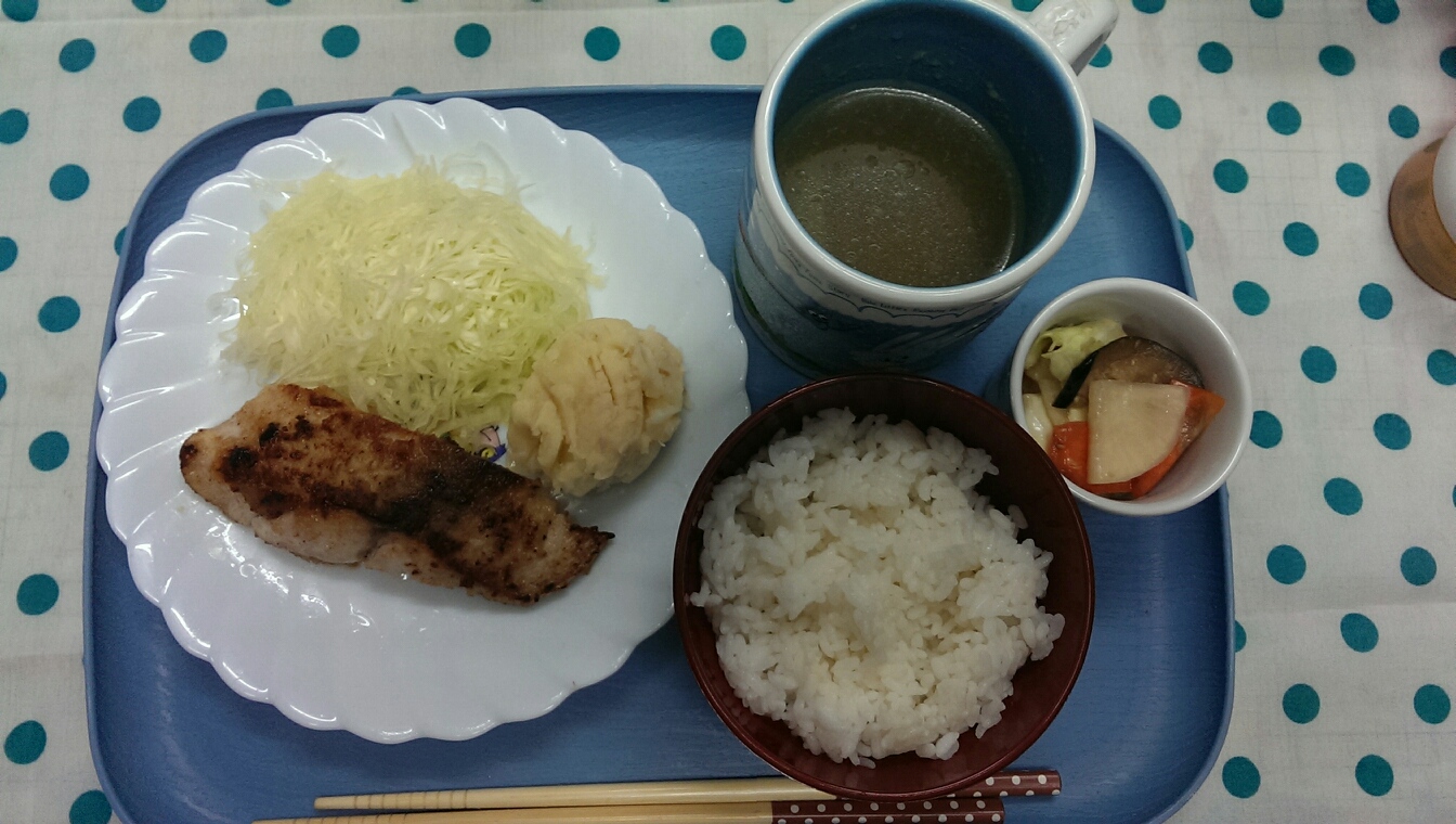 06 August 自炊メモ8月6日(朝、昼、夜) ■食パン、マヨネーズ、ハム■ヨーグルト、バナナジャム■カフェオレ■ごはん■おかず・玉子焼き・鶏肉の唐揚げ風焼き・ピーマンとナスの味噌炒め(前日のおかず)■ごはん■メイン・シイラ(白身魚)のムニエル ※唐揚げ粉■副菜・ハムとキャベツの芯のポテトサラダ・キャベツの千切り・野菜の漬け物■汁物・鶏とコンソメの玉ねぎスープ(昨日の残り)