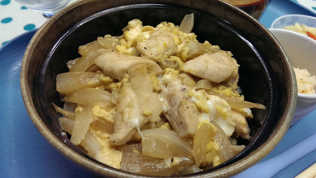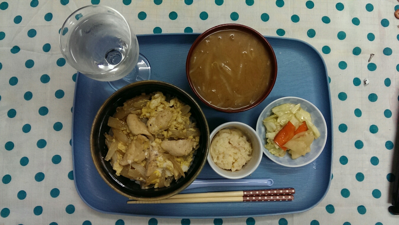 07 August 自炊メモ8月7日(朝、昼、夜) ■食パン、マヨネーズ、ハム■ヨーグルト、バナナジャム■カフェオレ■ごはん■おかず・玉子焼き・鶏肉の唐揚げ風焼き(前日のおかず)・キャベツの千切り■メイン・鶏ささみと玉葱の親子丼■副菜・ハムとキャベツの芯のポテトサラダ・野菜の漬け物■汁物・大根ともやしのお味噌汁